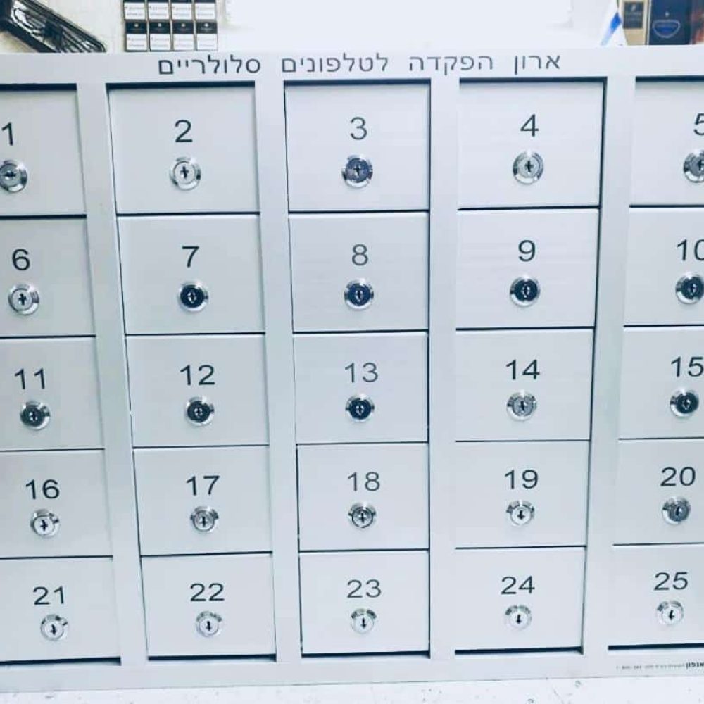 ארונות הפקדה לטלפונים סלולריים מותאמים אישית לצרכי הלקוח, מוגנים ונטענים.